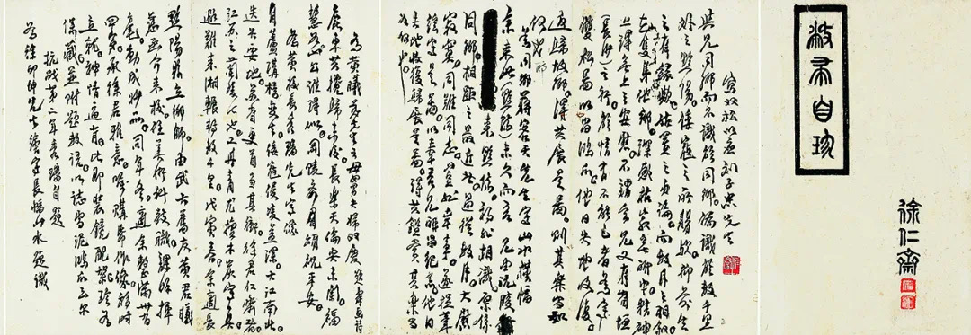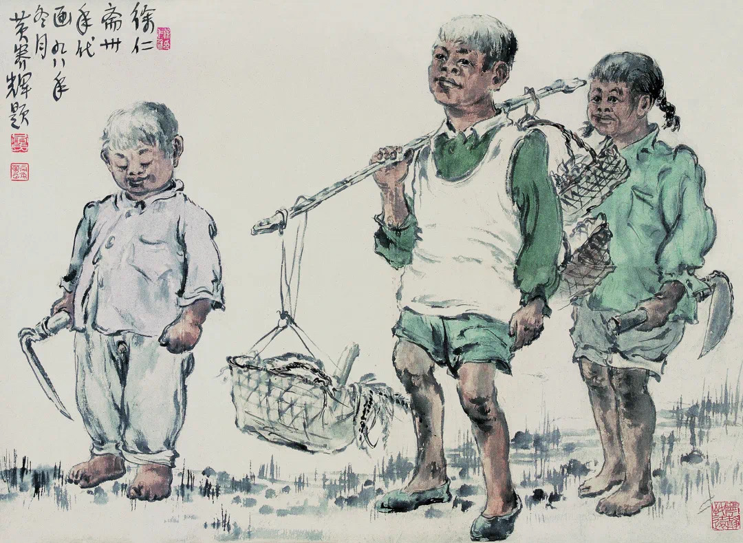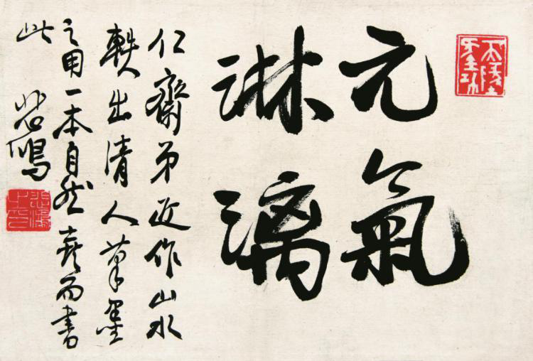 1943年,徐悲鸿老师为徐风作品题词:“元气淋漓,仁斋弟近作山水,轶出清人,笔墨之用,一本自然,喜而书此。”