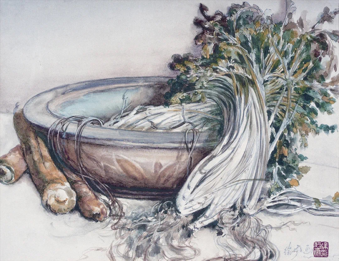 徐风的水粉、水彩画,以风景和静物为主,其用色朴实淡雅,意境清新自然。他把中国画的笔墨技法运用到作品中,呈现出融会中西的独特风貌。