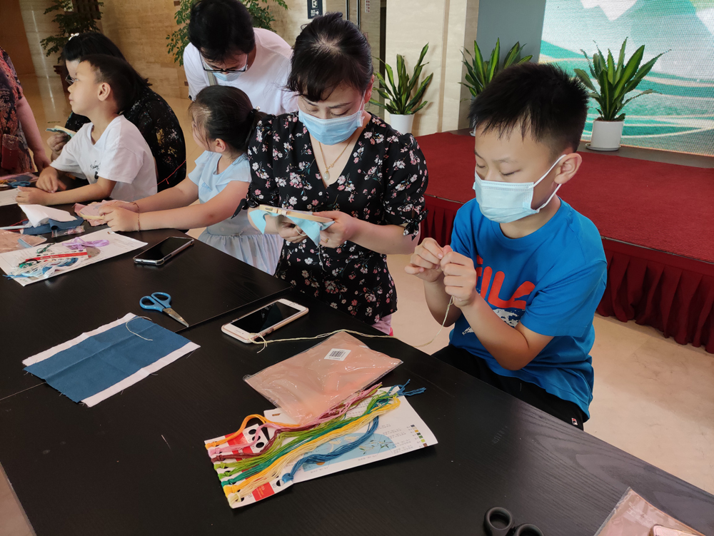 了解了渊源,30组亲子家庭一起从绣花开始,制作端午的香囊。