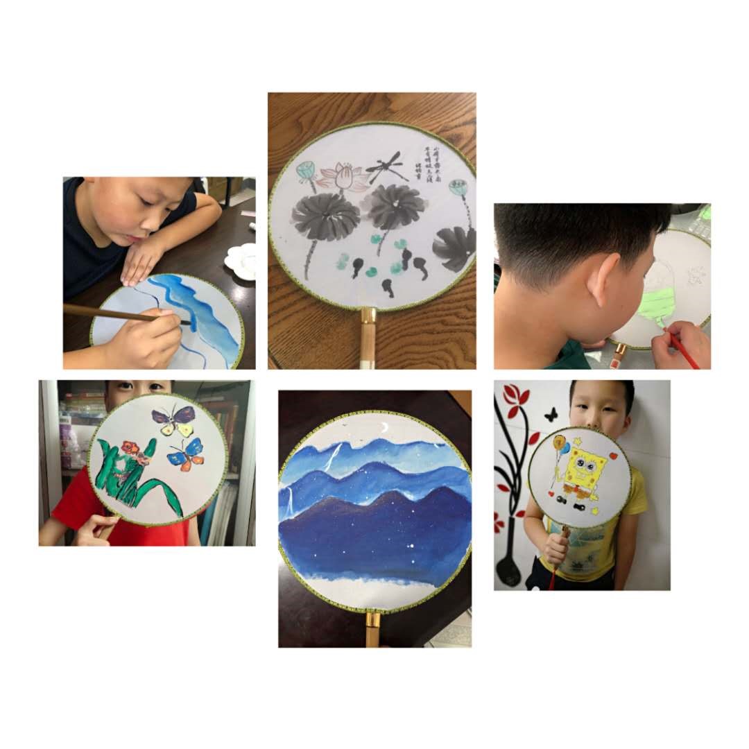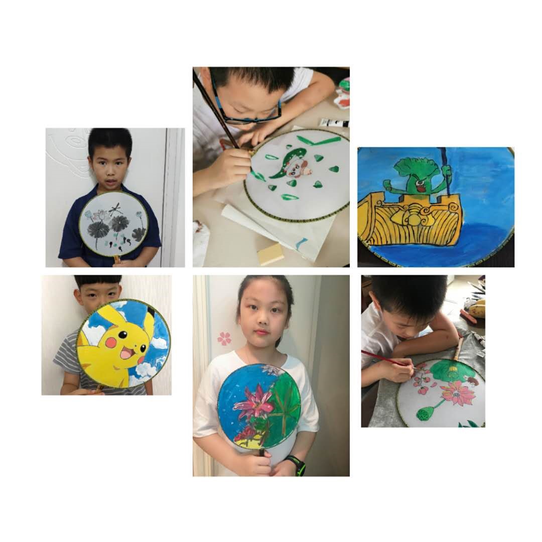 本次活动采用线上授课的模式,得到了社区内学生和家长的积极响应。大家都在约定的时间准时参加上线,老师通过图片、文字、语音等向同学们传授了手绘团扇的技巧和注意事项,同学们发挥想象,大胆构思,完成了属于自己独一无二的团扇作品。