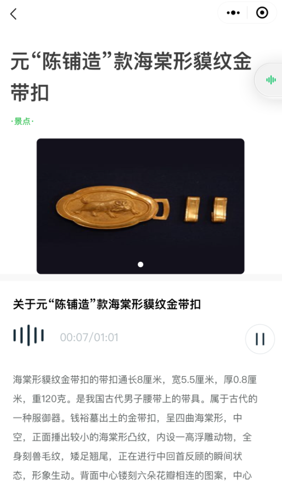 无锡全域旅游是市政府打造的将无锡作为旅游发展地进行旅游产业全景化、全覆盖的无锡旅游平台。依托AI技术与大数据算法,连接个性化旅游信息与无锡各区域的旅游资源,为公众提供与众不同的体验。全域旅游无锡博物院导览包括锡博基本信息及常设展厅的智能导览、虚拟导览三块内容,在每个展品页面有详细的图文音频介绍。全域旅游锡博导览亮点有两个:一是蓝牙推送导览讲解,二是通过展厅热点图就可以快速浏览重点展品信息,赶快扫码体验吧!