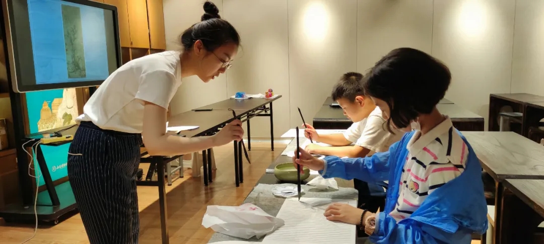 “石润苔痕雨过,竹阴树影云深”。炎炎夏日,让我们展开画卷《苔痕树影图》,神游倪瓒笔下“萧疏幽淡”的太湖佳景,在长夏里偷得一抹凉意。社教老师从历史背景、画家事迹着手,讲述倪瓒的人生和心态对画风的影响。同学们也在老师的带领下,临摹《苔痕树影图》,领略中国画的艺术魅力。