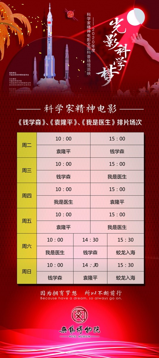科技助力美好生活。9月22日,无锡博物院启动“光影科学梦”——科学家精神电影展映活动,《钱学森》、《袁隆平》、《我是医生》三部影片在无锡博物院免费展映。影片以“中国航天之父”钱学森、中国杂交水稻育种专家袁隆平、“中国肝胆外科之父”吴孟超为原型,以鲜活艺术手法跨越历史时空,深刻再现了科学家们为推动民族独立、国家繁荣和人民幸福所建立的卓越历史功勋,以及他们心忧天下、造福人类、自强不息、淡泊名利的高尚情操。科学家影片展映受到很多观众的强烈欢迎,特别是一些老年观众赞不绝口,表示每一部都要认真观看,为科普日聚集了人气。