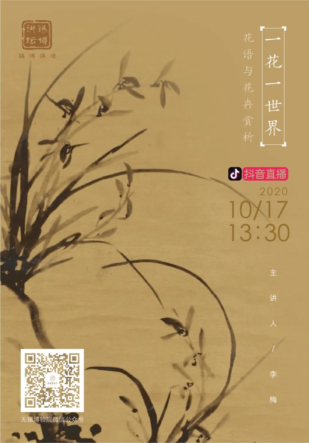 本讲座为社会公益性活动,将使用抖音APP进行直播,观众朋友们可以通过抖音搜索“无锡博物院”,进入讲座直播间观看。