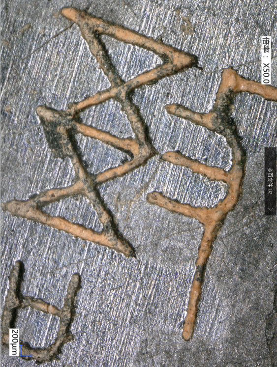 本次检测使用X-CT设备、XRF-XRD联用分析系统、光学显微镜等设备,无损分析了剑的保存状况、内部连接结构、表面成分、表面铭文制作痕迹等信息,得出了“12字铭文判断为非刻划而成”的结论,进一步为吴王剑“验明正身”,并为之后的保护修复和研究提供了强有力的支撑。