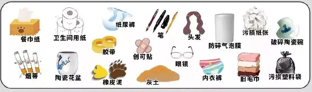 除可回收物、有害垃圾、易腐垃圾以外的其他生活废弃物。投入其他垃圾收集容器,并保持周边环境整洁。