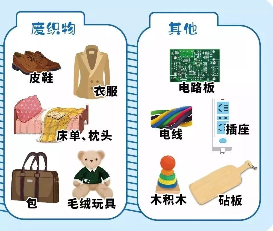 适宜回收可循环利用的生活废弃物。投放可回收物时,应尽量保持清洁干燥,避免污染;立体包装应清空内容,清洁后压扁投放;易破损或有尖锐边角的应包后投放。