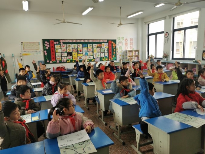 同学们沉浸在愉快的课堂氛围中,小手时不时举起回答问题,积极与老师互动。