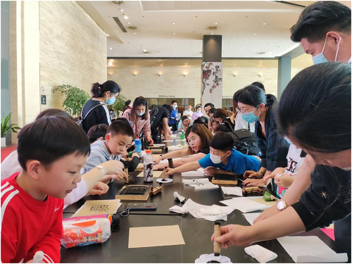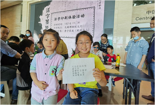 凹凸不平的纹路好似伸展的历史骨骼,润泽的墨迹则像正在流淌的文明血液,千百年来,活字印刷术始终承担着记录历史、传承文明的重责。在这个五一,无锡博物院带领各位大朋友、小朋友们一起探索古印刷术的奇妙旅行。隐隐墨香扑面而来,几张并排的大桌上放着各种字盘,字盘里是方方正正的木头字模。参与者们使用纸墨、刷子和木尺等工具,选字、排版、上墨、印刷,亲手体验古老的活字印刷技艺,体会传统文化之美。