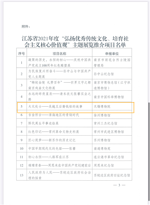 2021年无锡博物院精心策划筹备文物展览,深化馆校合作,积极组织院内优秀展览、社教项目参评省文物局组织的评选活动。多个项目在评选过程中脱颖而出,获得了组织方及观众的一致认可。