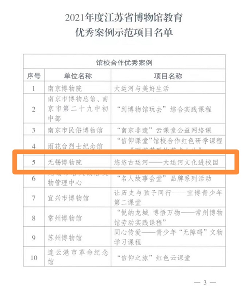 日前,江苏省文物局组织开展的2021年度江苏省博物馆教育优秀案例现场评审会顺利召开。我院馆校合作项目“悠悠古运河——大运河文化进校园”与研学游项目“行走”系列研学旅行之“倪迂之境”双双入选。